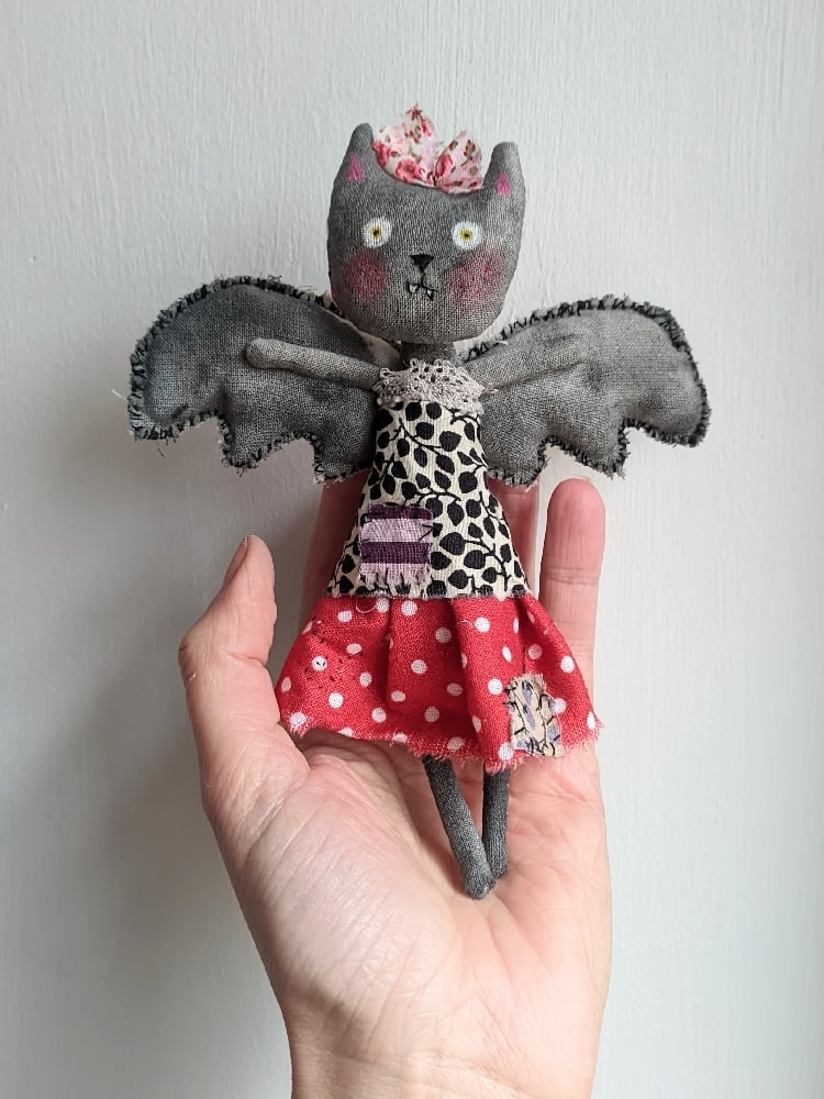 She is handmade from a mix of new and upcycled materials.