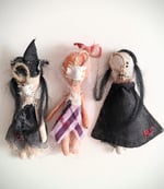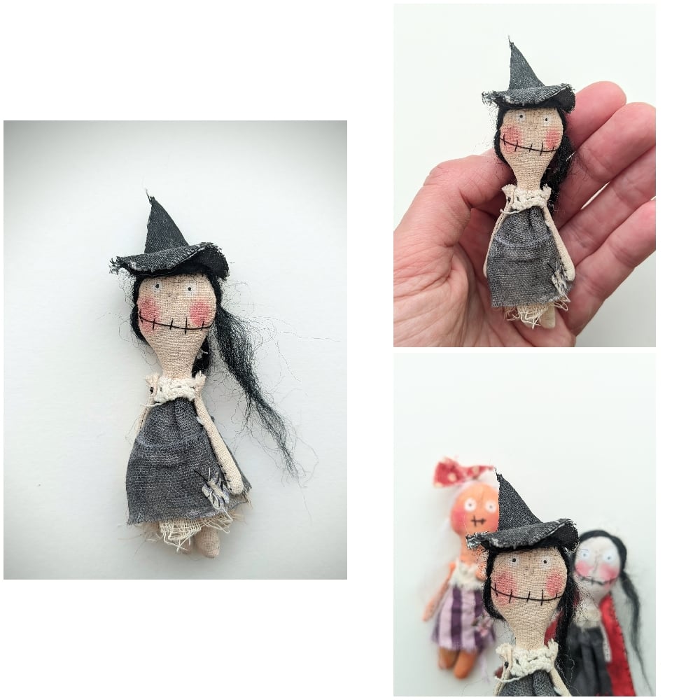 Little vampire and pumpkin measure each 8.5cm/3.34 inches and little witch is 10 cm/3.94 inches tall.