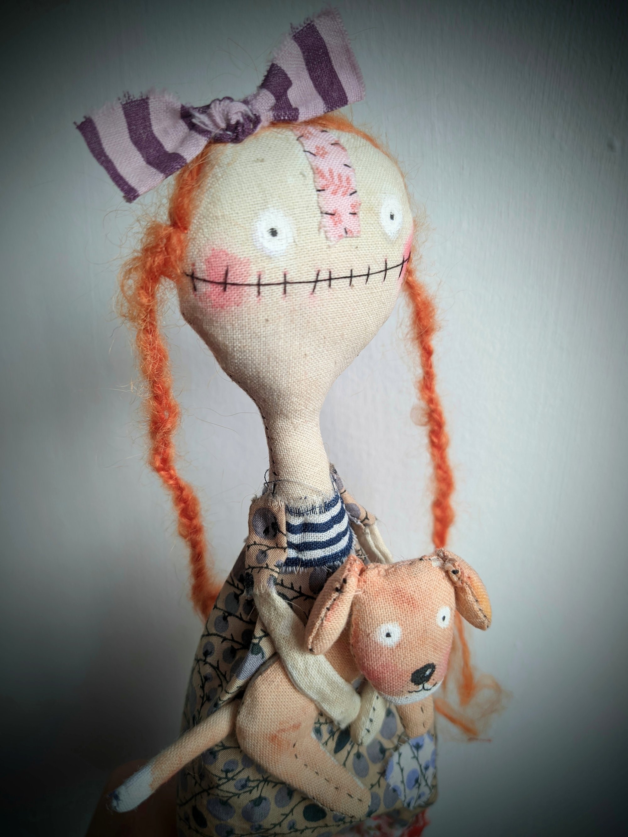 As a doll maker inspired by folk art dolls, I want to say that the fabric fraying, the threads still showing or the way things are attached to each other are all voluntary processes. This is the way I find that my creations are beautiful. This how I feel they are unique and original. It shows their frailties, flaws and their strength altogether.