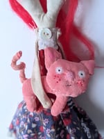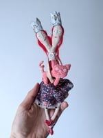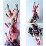 I had lots of fun making these siamese sisters and their little Piggy friend. They are handmade from a mix of new and upcycled materials.