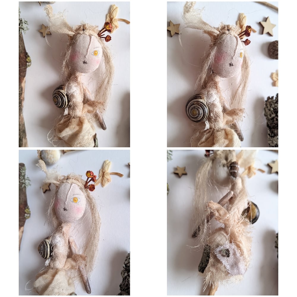 This little one is a beautiful member of my ongoing Forest Spirit collection. I like to create little beings that I secretly believe could live in our Forests and Woods, hidden from our eyes. My Forest Spirits are gentle souls and have in common to integrate elements of nature as parts of themselves, like a strange and perfectly imperfect osmosis.